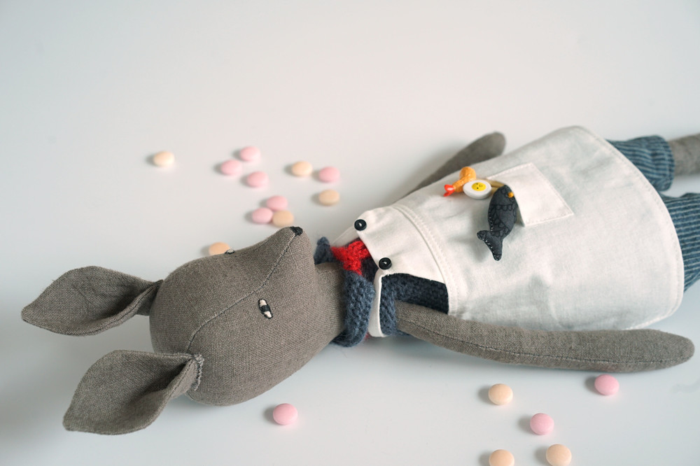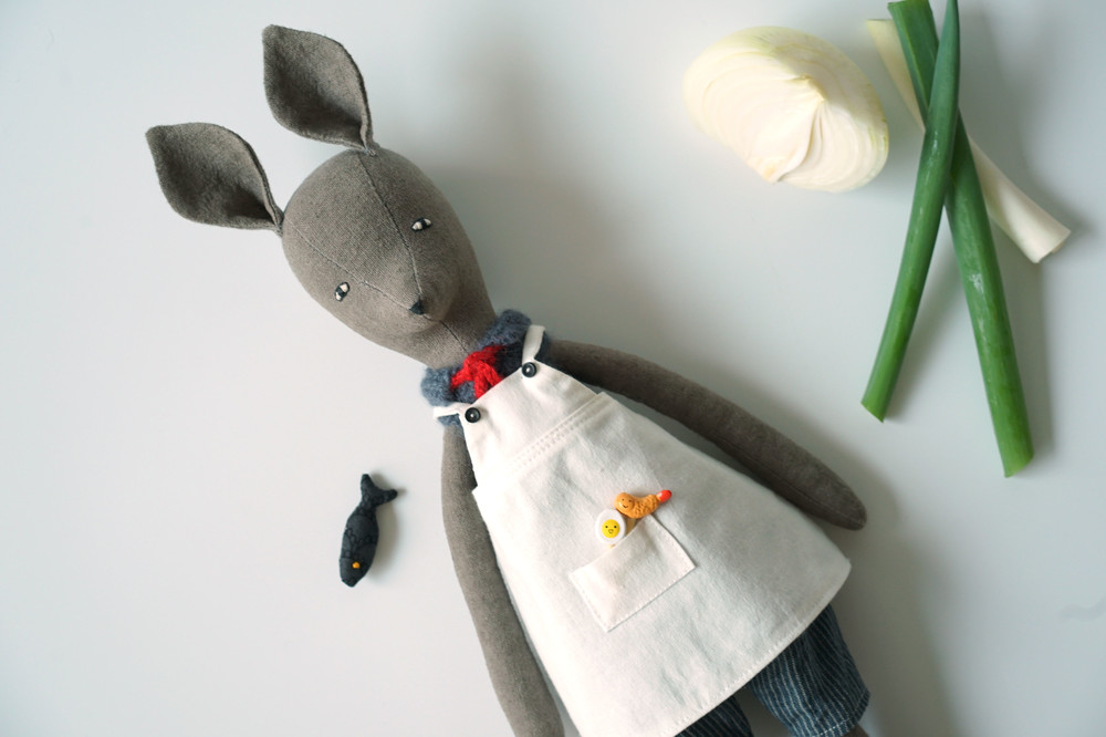 소재: 바디(리넨 50%, 라미 50%), 상의(페루 알파카 100%), 하의(리넨 100%), 물고기 인형(면 100%), 앞치마(면 100%)