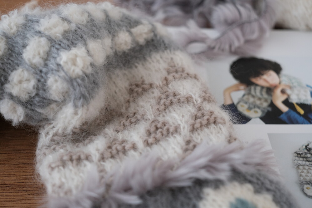원작 실의 텍스처와 색감을 활용하여 겨울에 만난 올빼미의 신비로움을 잘 표현한 작품입니다. 개성 있고 입체감 있는 세 가지 패턴으로 구성되기 때문에 지루할 틈이 없어요. 개인적으로는 에리카 도카이 작가가 의도한 편물들을 떠올리며 만들다 보니 감탄하며 떠내려 간 것 같아요.