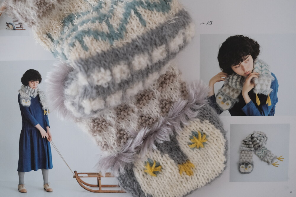 Erika Tokai 작가의 배색 니트 도안집에 수록된 "가면올빼미 목도리 뜨기" 제작을 위한 특별 기획 패키지입니다.